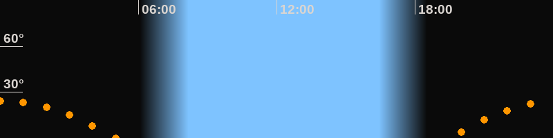| Aufgang | 19:25 Uhr im Südosten (αAz = 113,4°) |