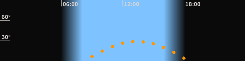 | Höchster Stand (Kulmination) | 13:22 Uhr (h = 29°) |