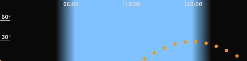 | Höchster Stand (Kulmination) | 18:43 Uhr (h = 29°) |