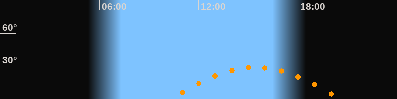 | Höchster Stand (Kulmination) | 15:25 Uhr (h = 29°) |