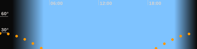 | Aufgang | 18:46 Uhr im Osten (αAz = 105,6°) |