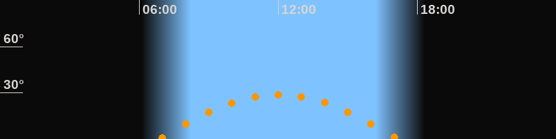 | Höchster Stand (Kulmination) | 12:00 Uhr (h = 29°) |