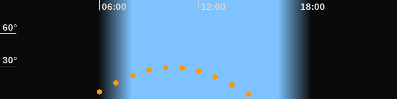 | Höchster Stand (Kulmination) | 10:23 Uhr (h = 29°) |