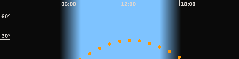 Höchster Stand (Kulmination)13:09 Uhr (h = 29°)