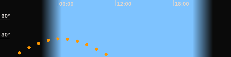 | Höchster Stand (Kulmination) | 06:21 Uhr (h = 29°) |