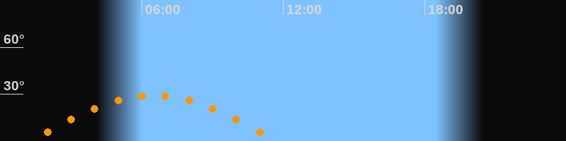 | Höchster Stand (Kulmination) | 06:29 Uhr (h = 29°) |