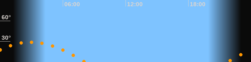 | Aufgang | 21:42 Uhr im Osten (αAz = 105,6°) |