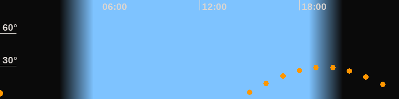 | Aufgang | 14:14 Uhr im Osten (αAz = 105,6°) |