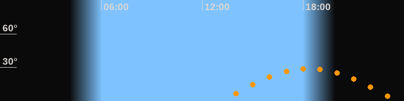 | Höchster Stand (Kulmination) | 18:21 Uhr (h = 29°) |