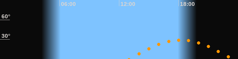 | Höchster Stand (Kulmination) | 18:14 Uhr (h = 29°) |