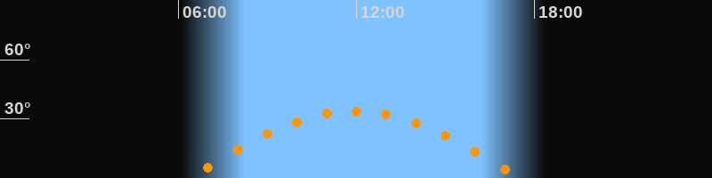 | Höchster Stand (Kulmination) | 11:56 Uhr (h = 34°) |