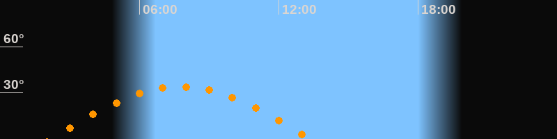 | Höchster Stand (Kulmination) | 07:45 Uhr (h = 34°) |