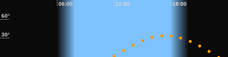 | Höchster Stand (Kulmination) | 17:24 Uhr (h = 34°) |