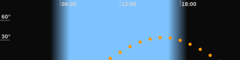 | Höchster Stand (Kulmination) | 16:14 Uhr (h = 34°) |