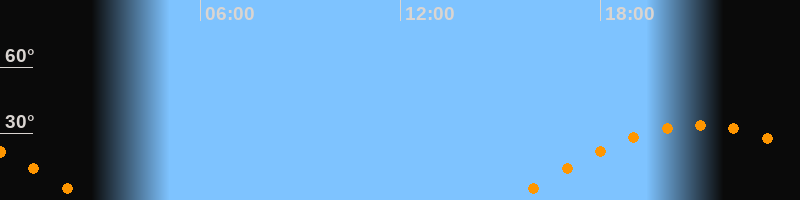 | Aufgang | 15:20 Uhr im Osten (αAz = 97,7°) |