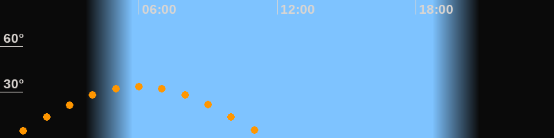 | Höchster Stand (Kulmination) | 06:01 Uhr (h = 34°) |