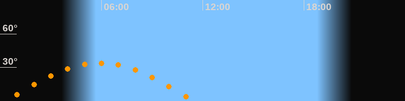 | Höchster Stand (Kulmination) | 05:54 Uhr (h = 34°) |