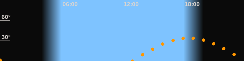 | Höchster Stand (Kulmination) | 18:32 Uhr (h = 34°) |