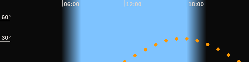 | Höchster Stand (Kulmination) | 17:32 Uhr (h = 34,3°) |