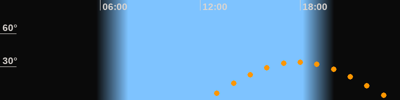 | Höchster Stand (Kulmination) | 17:52 Uhr (h = 34,3°) |