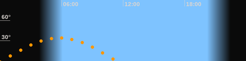 | Untergang | 11:24 Uhr im Westen (αAz = 262,8°) |