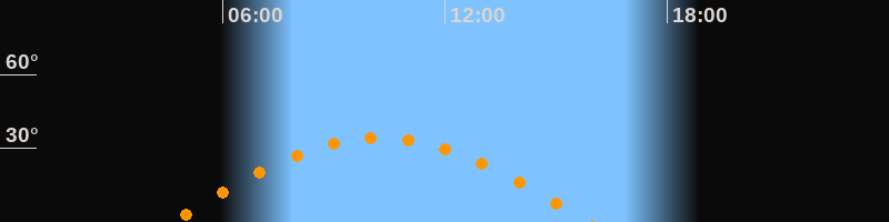 | Höchster Stand (Kulmination) | 10:14 Uhr (h = 34,3°) |
