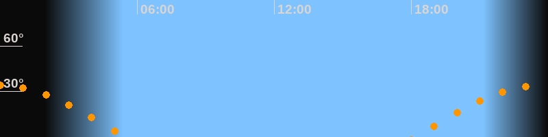 | Untergang | 05:28 Uhr im Westen (αAz = 262,8°) |