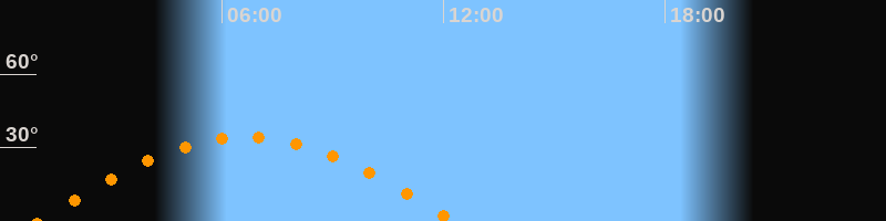 | Höchster Stand (Kulmination) | 06:39 Uhr (h = 34,3°) |