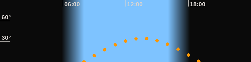 | Höchster Stand (Kulmination) | 13:33 Uhr (h = 34,3°) |