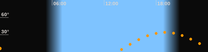 | Höchster Stand (Kulmination) | 19:04 Uhr (h = 34,3°) |