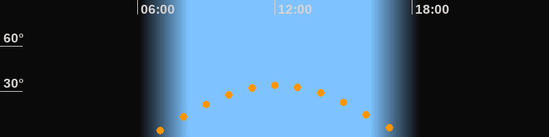 | Höchster Stand (Kulmination) | 12:05 Uhr (h = 34,3°) |