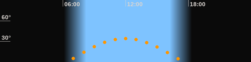 Höchster Stand (Kulmination)11:58 Uhr (h = 34,3°)