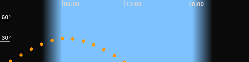 | Höchster Stand (Kulmination) | 06:25 Uhr (h = 34,3°) |