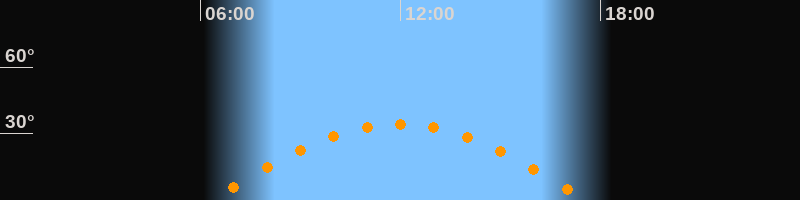 | Höchster Stand (Kulmination) | 11:57 Uhr (h = 34,3°) |