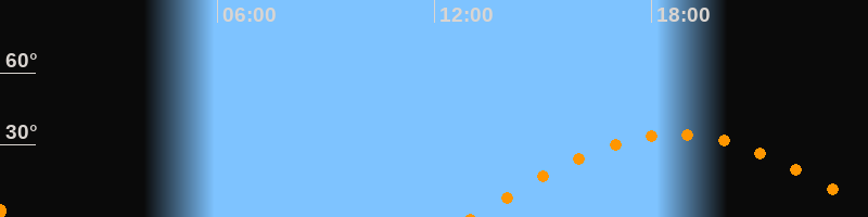 | Höchster Stand (Kulmination) | 18:41 Uhr (h = 34,3°) |