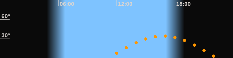 | Höchster Stand (Kulmination) | 16:45 Uhr (h = 34,3°) |