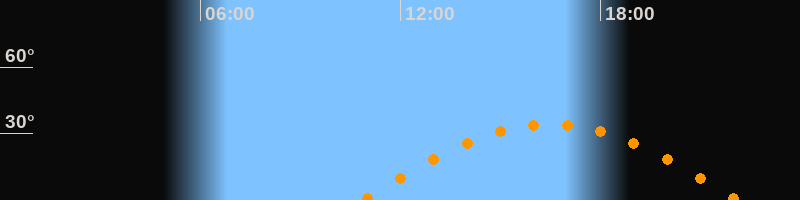 | Höchster Stand (Kulmination) | 16:30 Uhr (h = 34,3°) |
