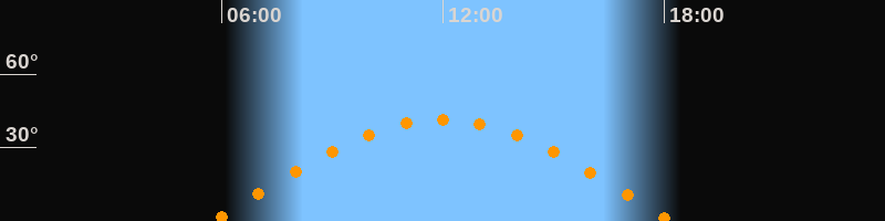 | Höchster Stand (Kulmination) | 11:58 Uhr (h = 41,4°) |
