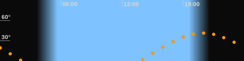 | Aufgang | 13:42 Uhr im Osten (αAz = 85,9°) |
