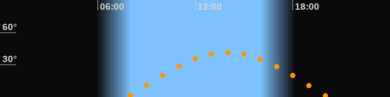 | Höchster Stand (Kulmination) | 13:59 Uhr (h = 41,6°) |
