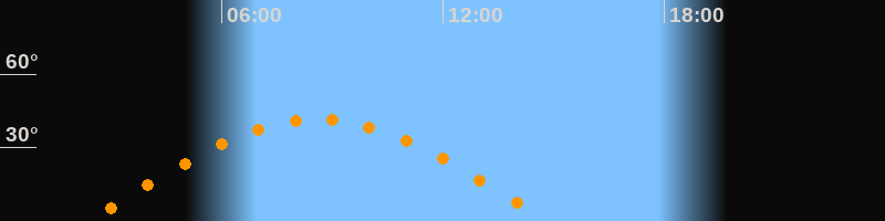 | Höchster Stand (Kulmination) | 08:36 Uhr (h = 41,6°) |