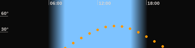 | Höchster Stand (Kulmination) | 14:09 Uhr (h = 41,6°) |