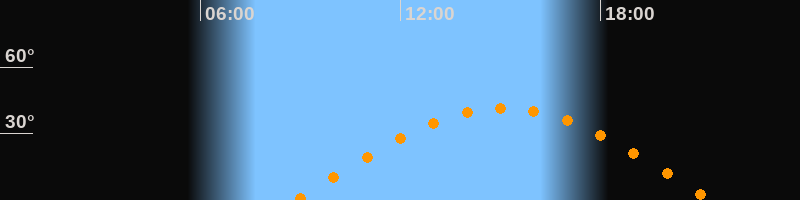 | Aufgang | 08:51 Uhr im Osten (αAz = 85,6°) |