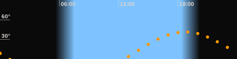 | Höchster Stand (Kulmination) | 18:43 Uhr (h = 41,6°) |