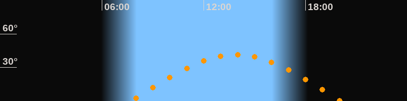 | Höchster Stand (Kulmination) | 13:53 Uhr (h = 41,6°) |