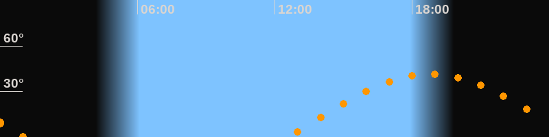 | Höchster Stand (Kulmination) | 18:47 Uhr (h = 41,6°) |