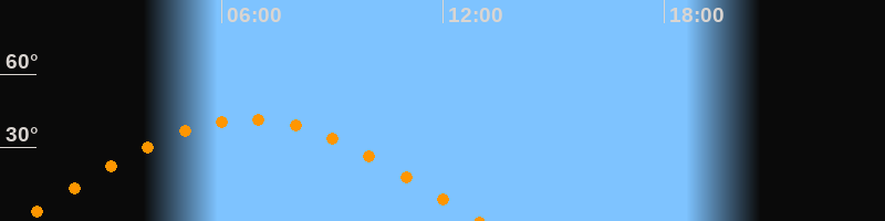 | Höchster Stand (Kulmination) | 06:45 Uhr (h = 41,6°) |