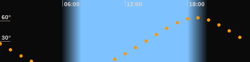 | Höchster Stand (Kulmination) | 18:47 Uhr (h = 64,6°) |
