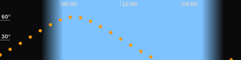 | Höchster Stand (Kulmination) | 07:20 Uhr (h = 64,6°) |
