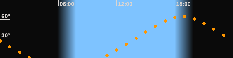 | Höchster Stand (Kulmination) | 18:45 Uhr (h = 64,6°) |